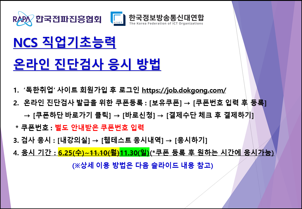 이번 한국전파진흥협회(rapa) x 한국정보방송통신대연합(ict) NCS 직업기초능력 온라인 진단검사 위탁 운영을 맡게된 (주)마이패스입니다.